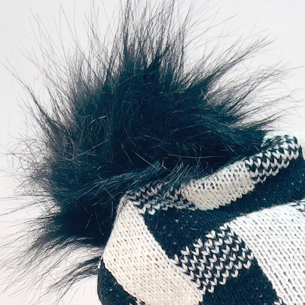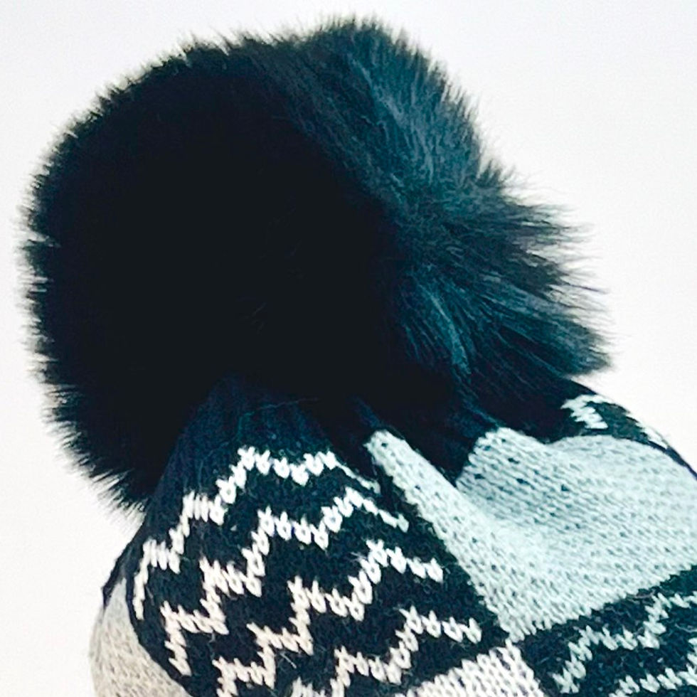 VIA FIORE Black Herringbone Beanie Trendy Winter Pom Hat
