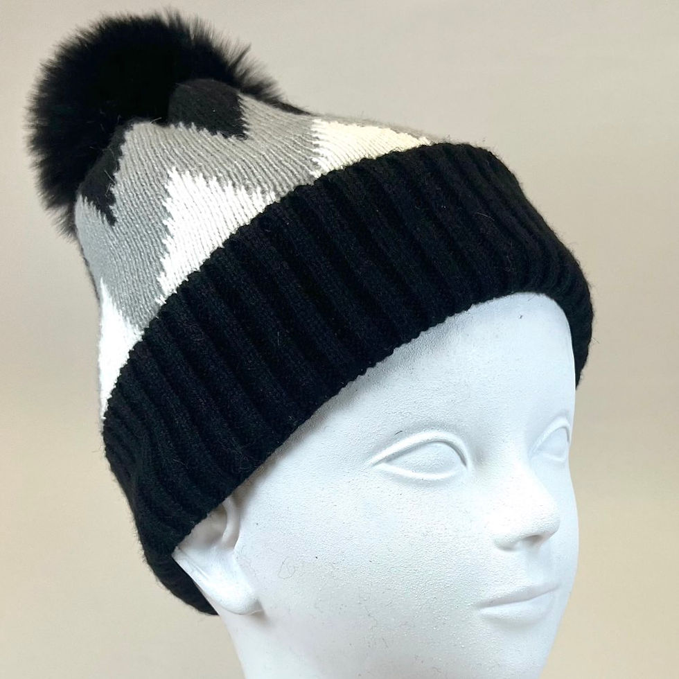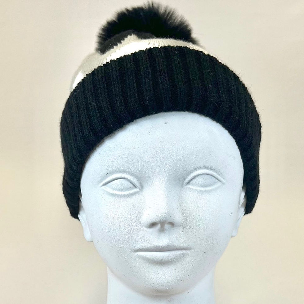 VIA FIORE Black Chess Cozy Knit Beanie Hat Warm, Stylish & Soft Pom Fashion