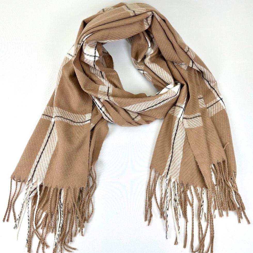 VIA FIORE Elegant Soft Brown Plaid Scarf w/ Fringes Versatile & Cozy Accessory