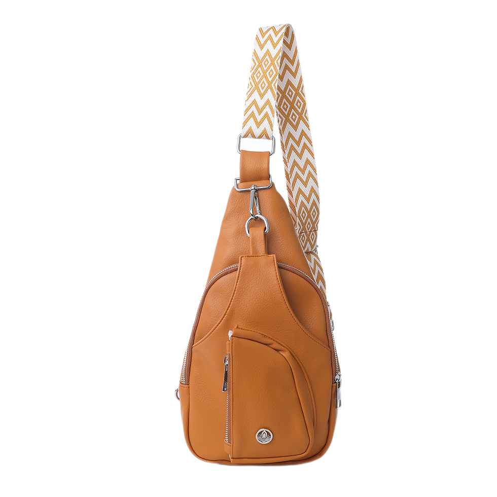 VIA FIORE Mustard Leather Crossbody Bag with Patterned Strap