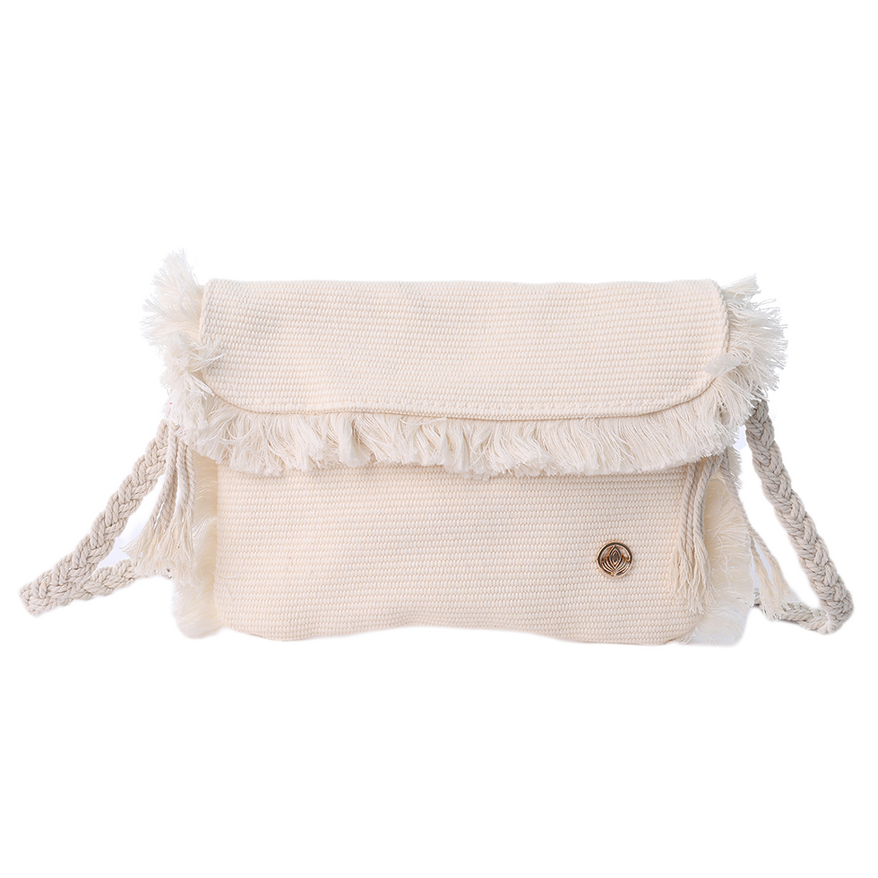 VIA FIORE Beige Woven Crossbody Bag with Fringe Detail
