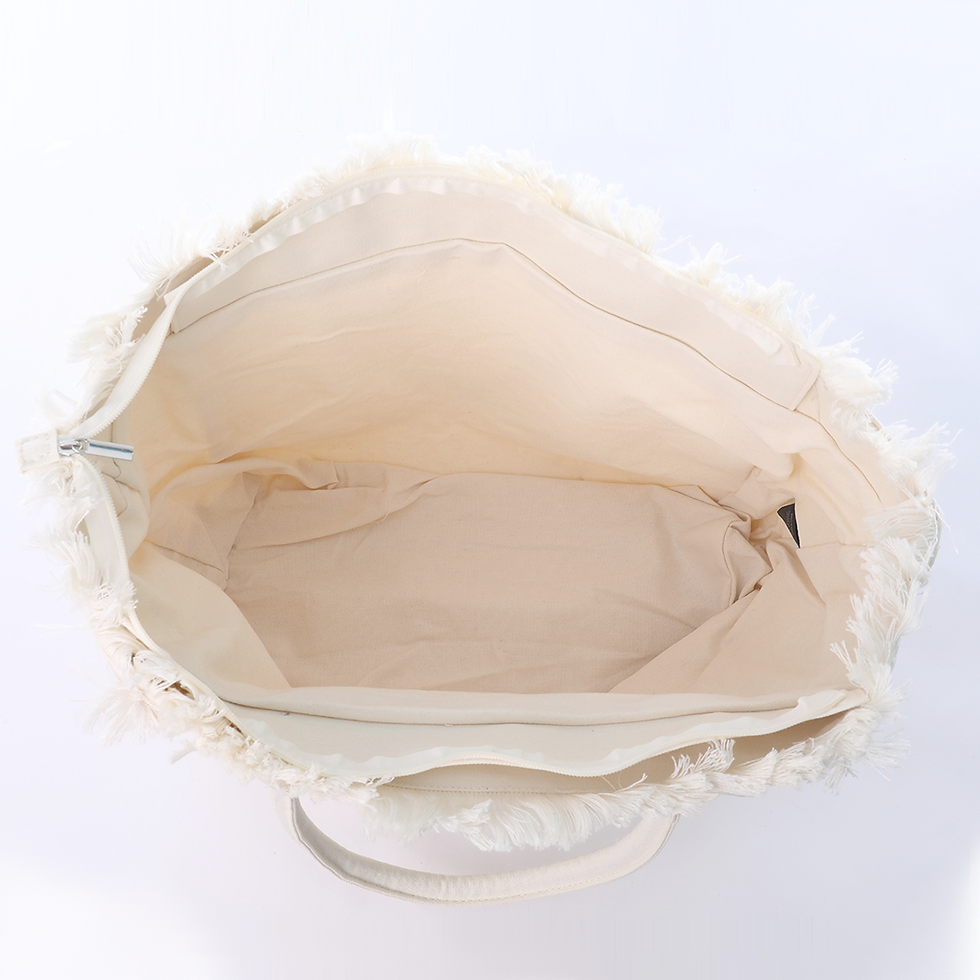 VIA FIORE White Canvas Tote with Frayed Edge