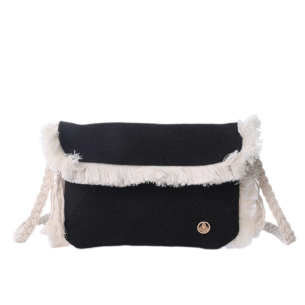 VIA FIORE Black Woven Crossbody Bag with Fringe Detail