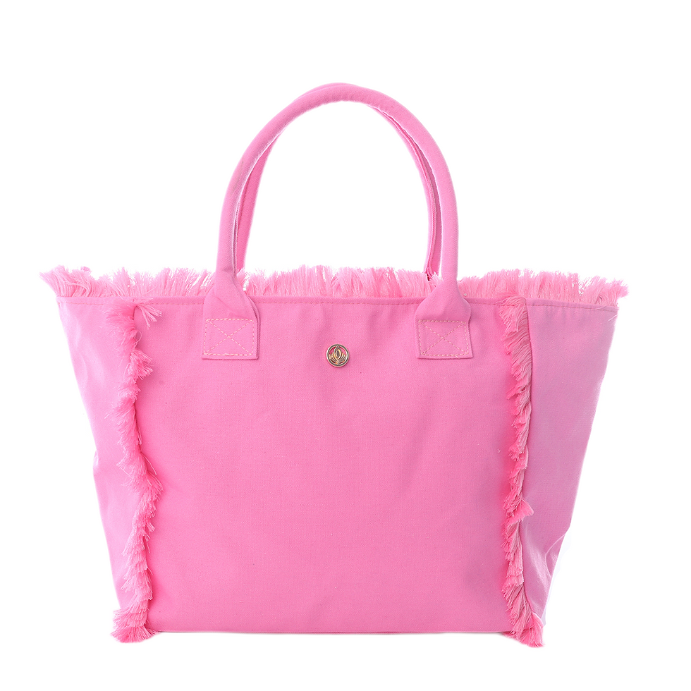 VIA FIORE Pink Canvas Tote with Frayed Edge